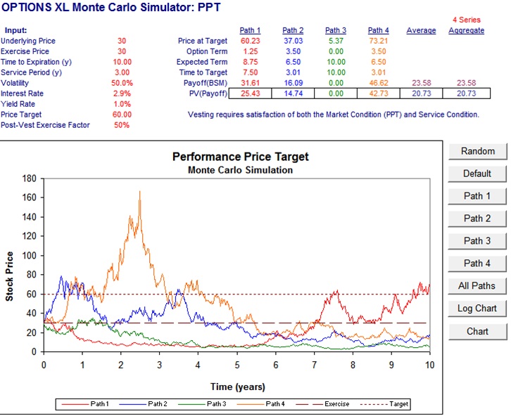 Because a stock price target is “path-dependent” (the stock might hit $50 and then fall, or never hit it at all), you cannot use a simple Black-Scholes model. Instead, companies almost always use Monte Carlo simulation.
